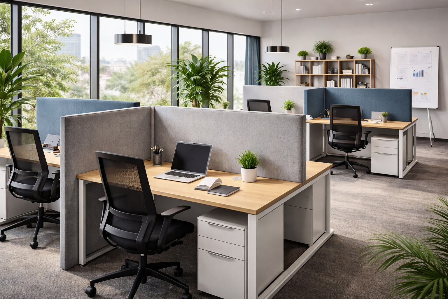 Dzięki zastosowaniu materiałów pochłaniających dźwięk, przegrody zwiększają prywatność akustyczną i poprawiają koncentrację. Doskonale sprawdzają się w biurach, open space’ach oraz innych przestrzeniach komercyjnych, gdzie ważna jest cisza i ergonomia pracy.